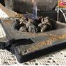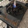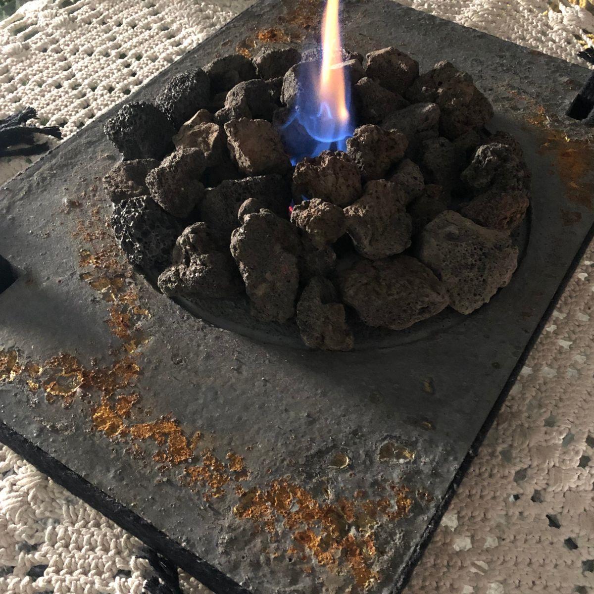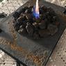 Lareira de mesa grande retangular, tamanho 55cmx38cmx3cm, feita em concreto refratário pigmentado em cimento queimado, possuindo recipiente em inox para receber o fluido específico para produção da chama, recipiente com capacidade para 200ml do fluído SC Bio Fluído (fluido para lareiras ecológicas), equivalente ao aquecimento por 2 horas de um ambiente de até 5x5 agradavelmente. No interior deste recipiente, têm-se a manta cerâmica responsável por manter a chama por longo período. Na parte interna das lareiras existem mantas específicas de isolamento térmico, assim como em sua parte inferior, evitando assim desgastes do móvel onde serão utilizadas.