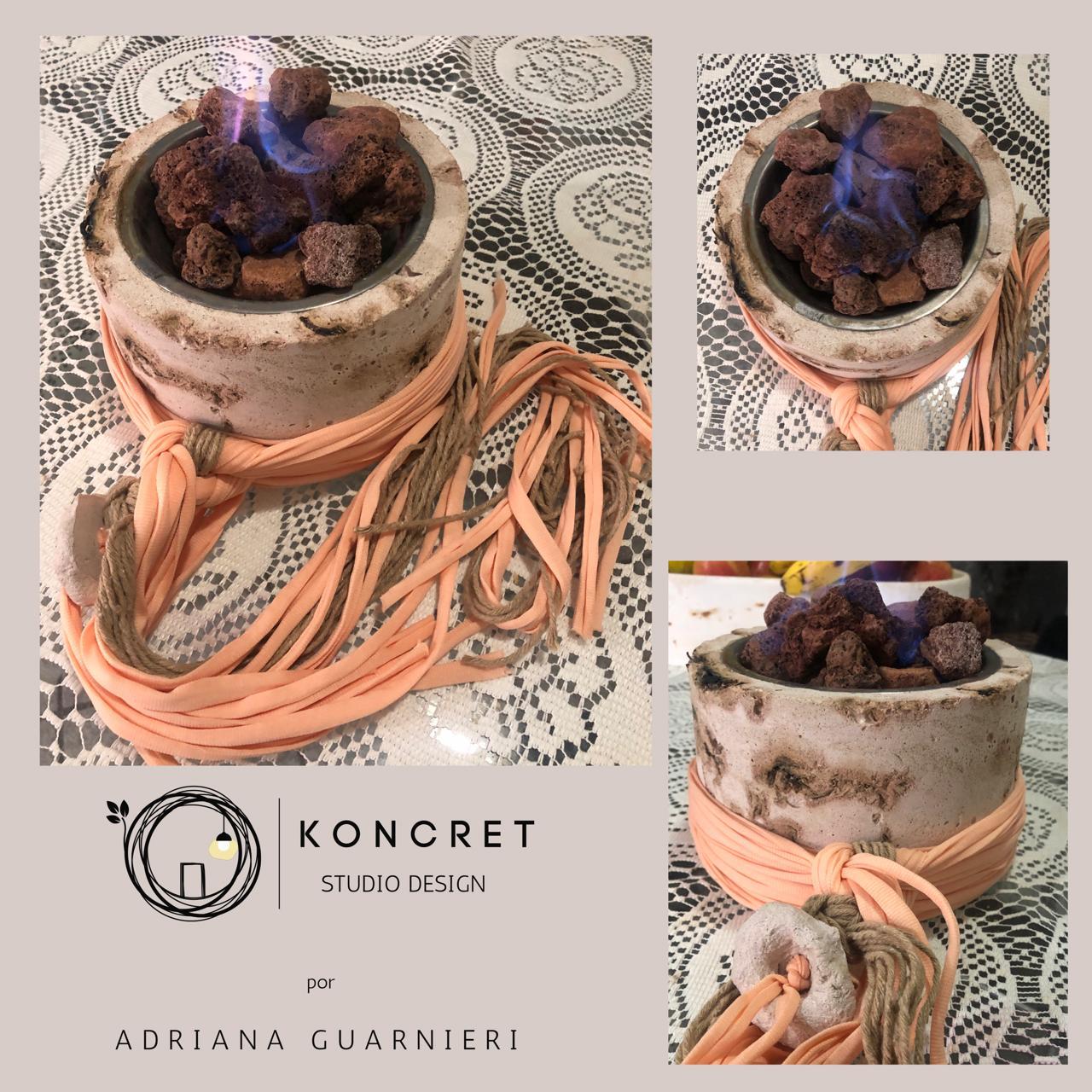 Lareira de Mesa Pequena Circular, tamanho 16 cm de diâmetro, 9cm de altura,feita em concreto refratário pigmentado, possuindo recipiente em inox parareceber o fluido especifico de produção da chama, recipiente com capacidadepara 200ml do fluido SC Bio Fluido (fluido para lareiras ecológicas),equivalente ao aquecimento por 2 horas de um ambiente de 5x5 agradavelmente. Nointerior deste recipiente, temos a manta cerâmica responsável por manter achama por longo período. Na parte interna das lareiras existem mantas específicasde isolamento térmico, assim como em sua parte inferior, evitando assimdesgastes do móvel onde será colocada. " />