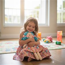 Vestido e boneca, estampa chapeuzinho vermelho e lobo
